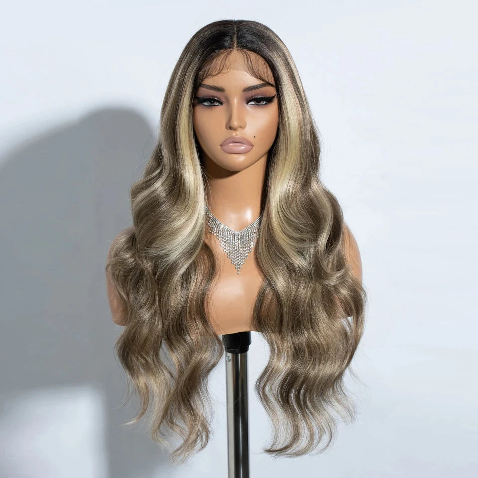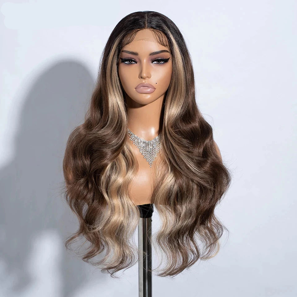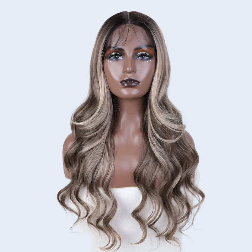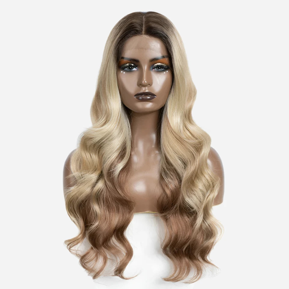 Glam Wave 26" Ombre Lace Front Wig – Honey Brown & Blonde Highlights